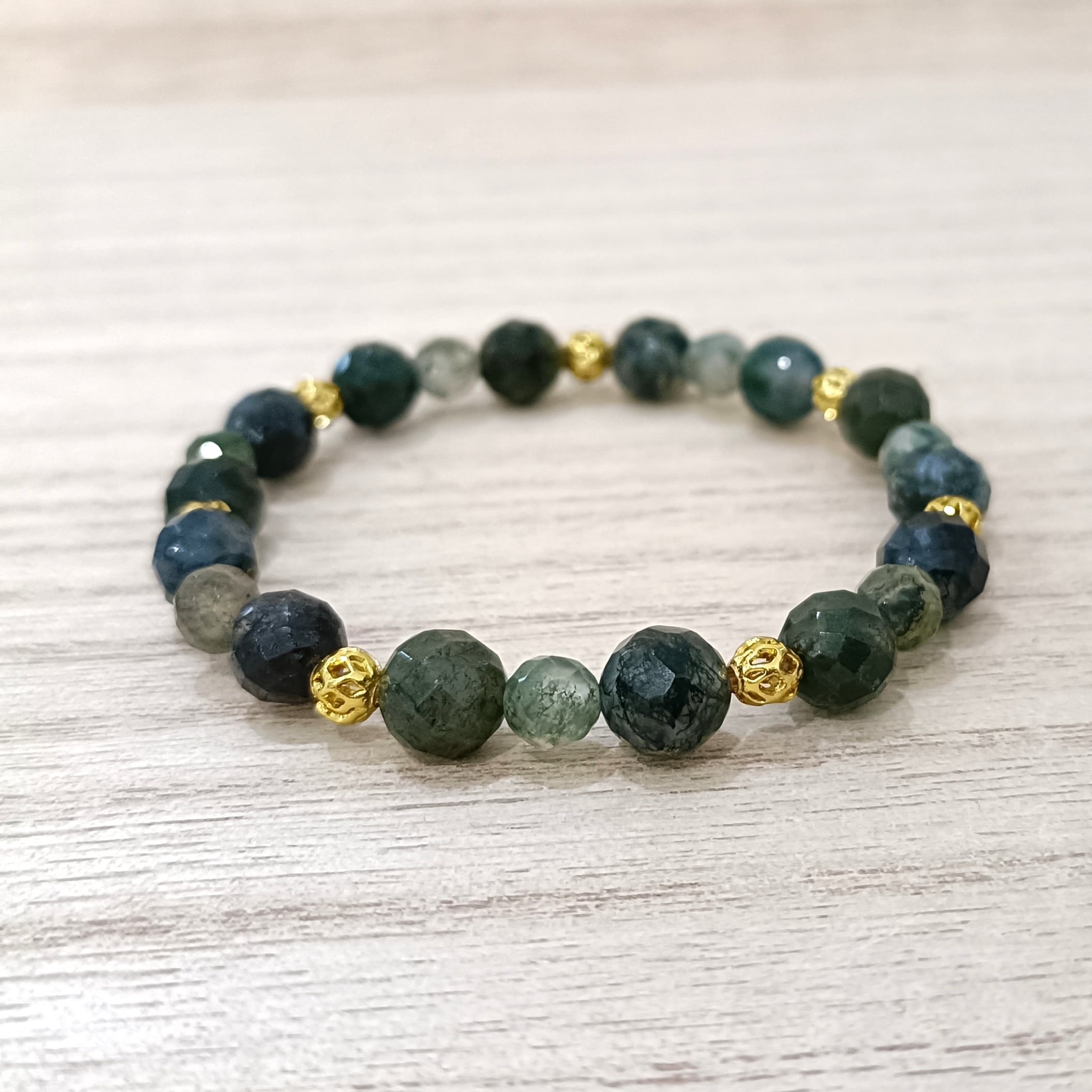 【癒しと成長】モスアゲートカット(サイズ:6・8mm)内径16cm