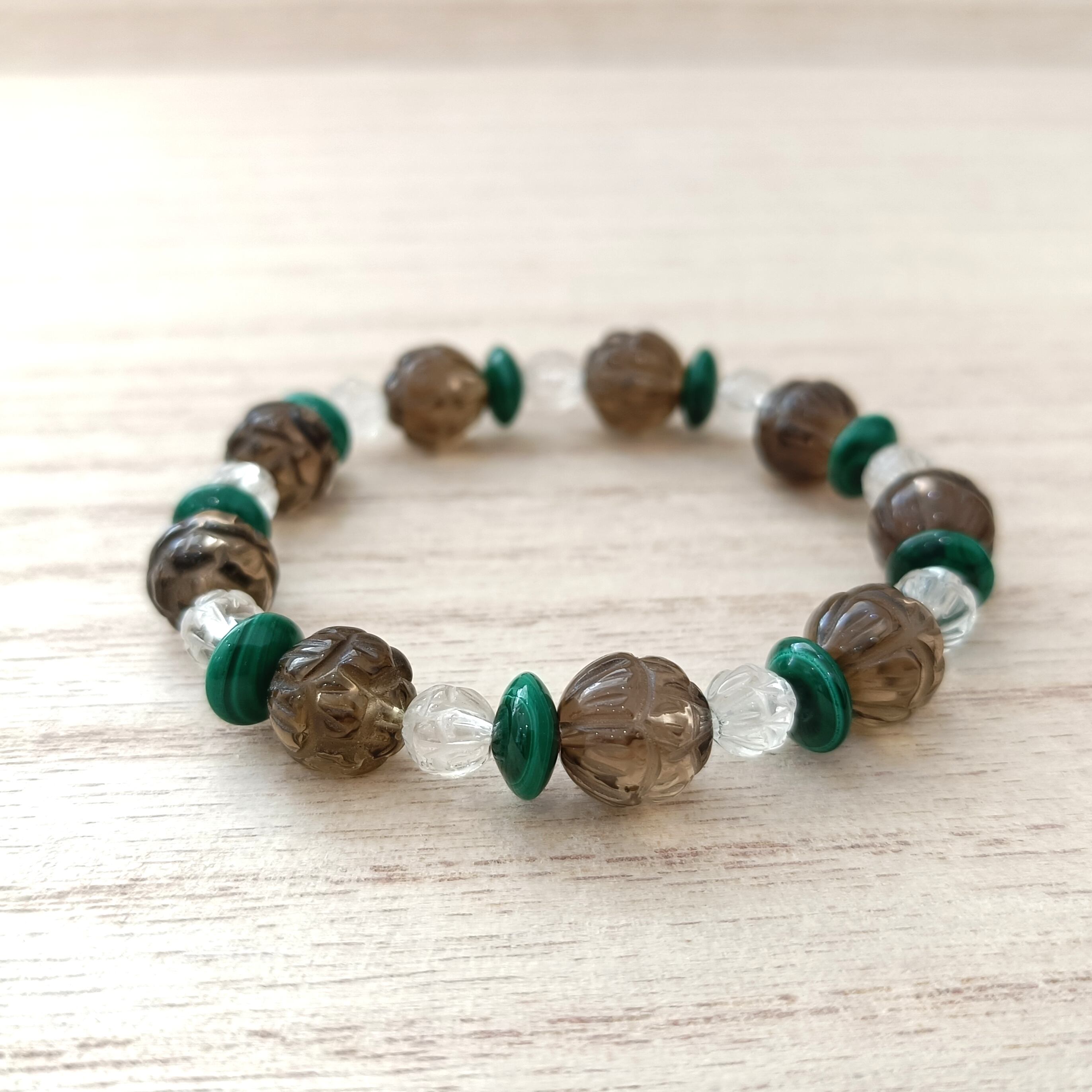 【最強厄除け・守護】スモーキークォーツ・水晶・マラカイト (石サイズ:10・6・mm)内径14cm