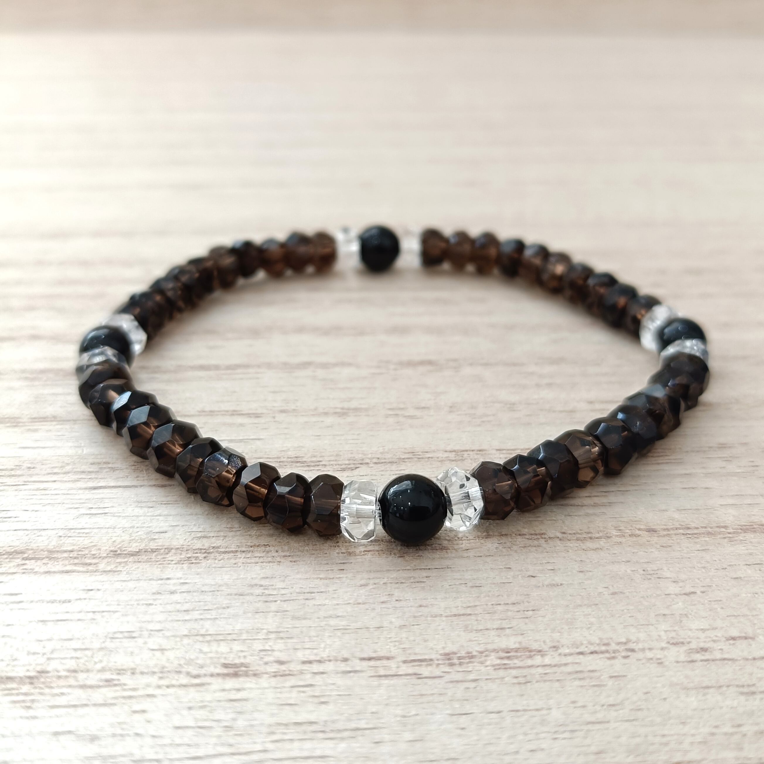 【最強厄除け・守護ブレスレット】スモーキークォーツ・モリオン・水晶(サイズ:6mm ボタンカット)内径14cm