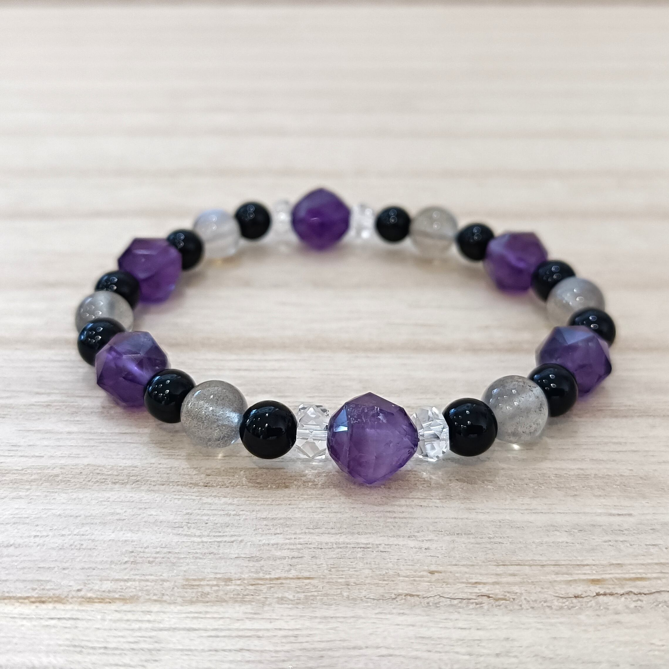 【守護・直感・魔除け】アメジスト・オニキス・ラブラドライト 水晶(サイズ:8・12mm)内径16cm