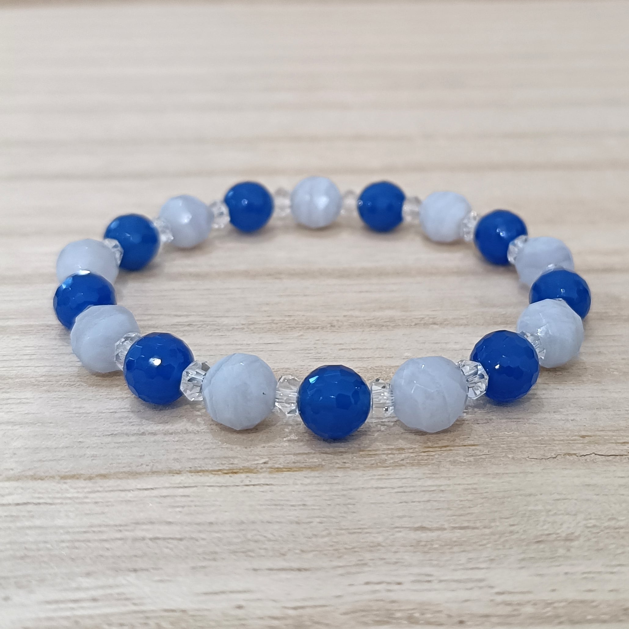 【癒しと調和】青めのう・ブルーレースアゲート・水晶(石サイズ:8mm)内径16cm
